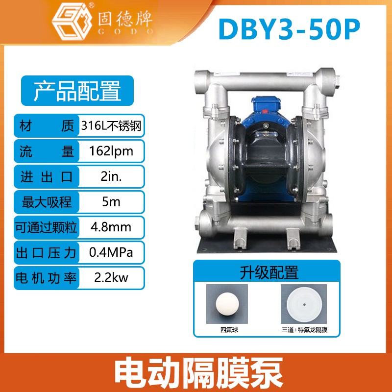固德牌電動隔膜泵DBY3-50P不銹鋼系列自吸無堵塞隔膜水泵耐酸堿耐腐蝕