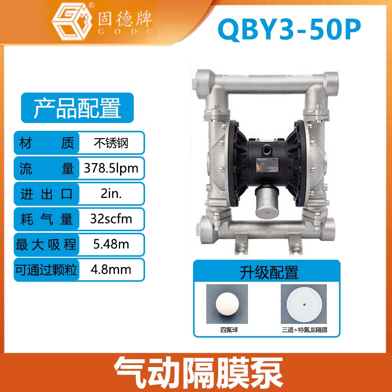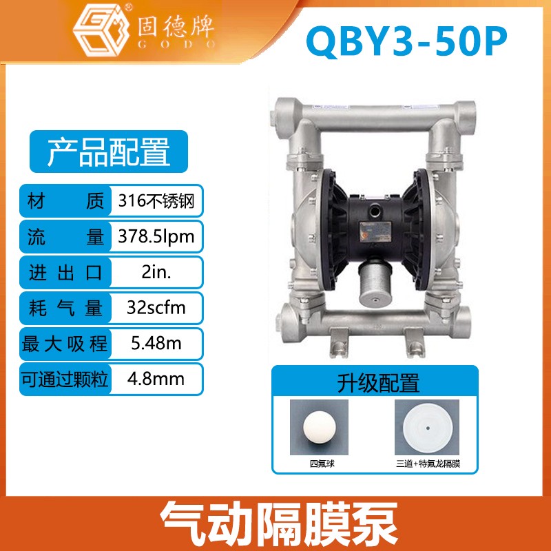 固德牌氣動隔膜泵QBY3-50P不銹鋼材質耐腐蝕膜片食品衛生級