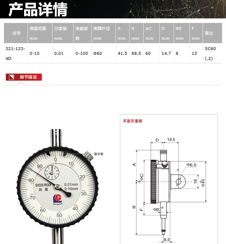 廣陸 10mm量程百分表(Ⅰ)