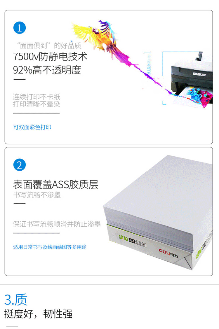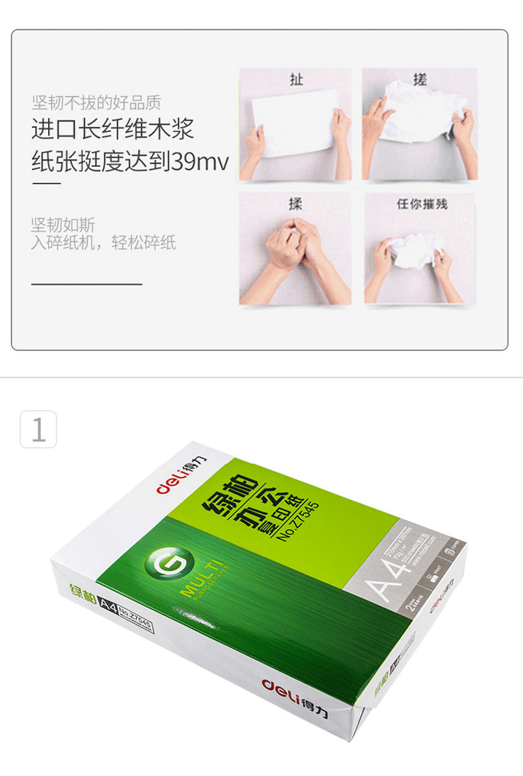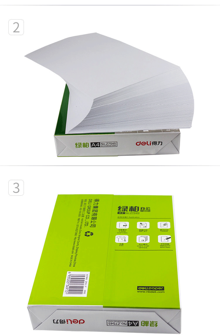 產(chǎn)品名稱:得力綠柏A4復(fù)印紙