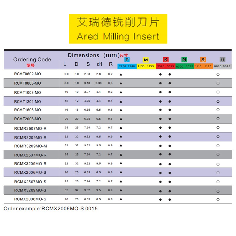 艾瑞德銑削刀片RCMT系列 加工不銹鋼,鍛鋼,模具鋼,淬火件,鈦合金