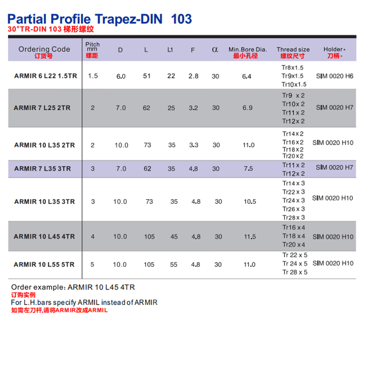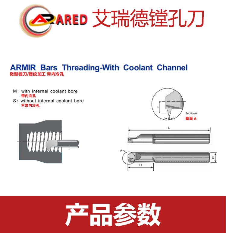 艾瑞德鏜孔刀 微型鏜刀/螺紋加工 帶內(nèi)冷孔 30°TR-DIN 103 梯形螺紋