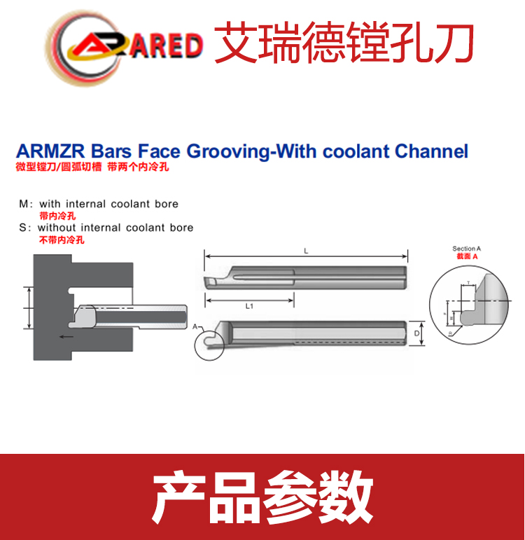 艾瑞德鏜孔刀 微型鏜刀/圓弧切槽 帶兩個內冷孔 ARMZR系列