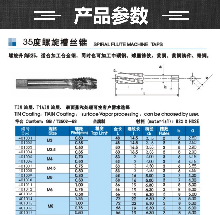陜西宏峰35°螺旋槽絲錐/絲攻 M3 -M24