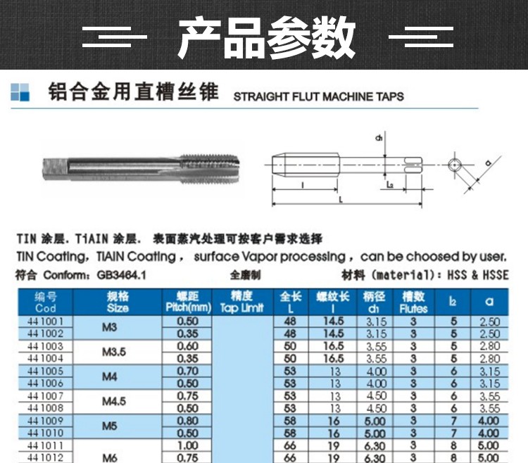 陜西宏峰鋁合金用直槽絲錐M3-M10