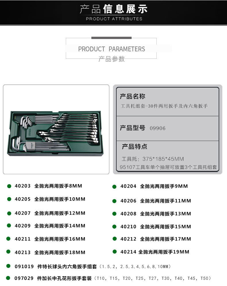 名稱:工具托組套 品牌:Sata/世達 材質:鉻釩鋼 產地:中國