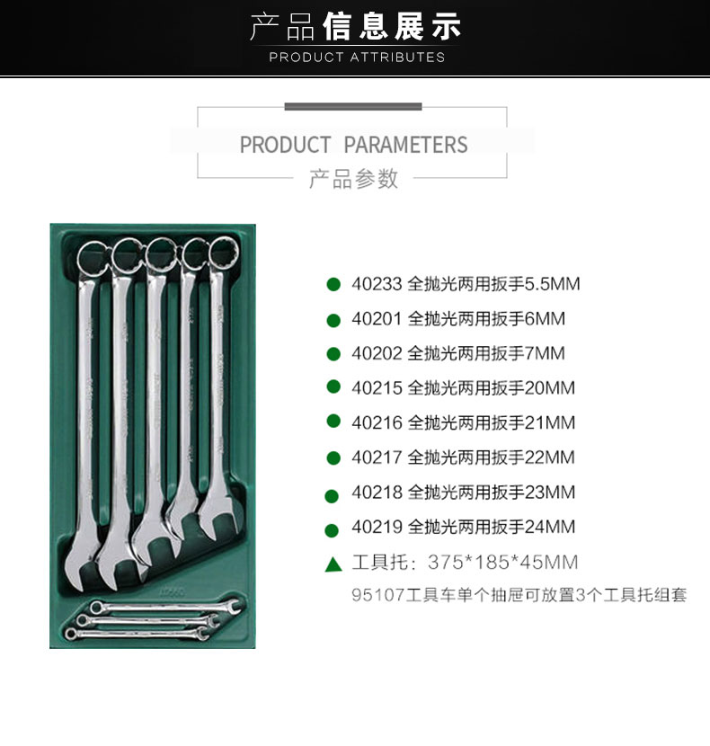 名稱:工具托組套 品牌:Sata/世達(dá) 材質(zhì):鉻釩合金鋼 產(chǎn)地:中國(guó)