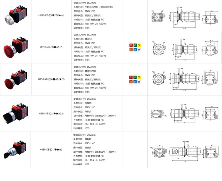 商品型號 HBS0-KB-□■/◎/△