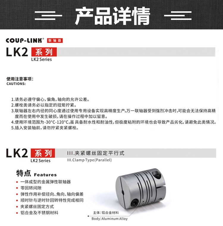 廣州菱科FA自動(dòng)化配件 LK2系列 夾緊螺絲固定平行式 彈性聯(lián)軸器