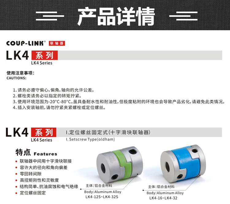 廣州菱科FA自動化配件 LK4 系列 十字滑塊聯軸器 定位螺絲固定式