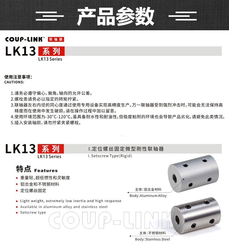 廣州菱科FA自動化配件 LK13 系列 微型剛性聯軸器 定位螺絲固定微型剛性聯軸器