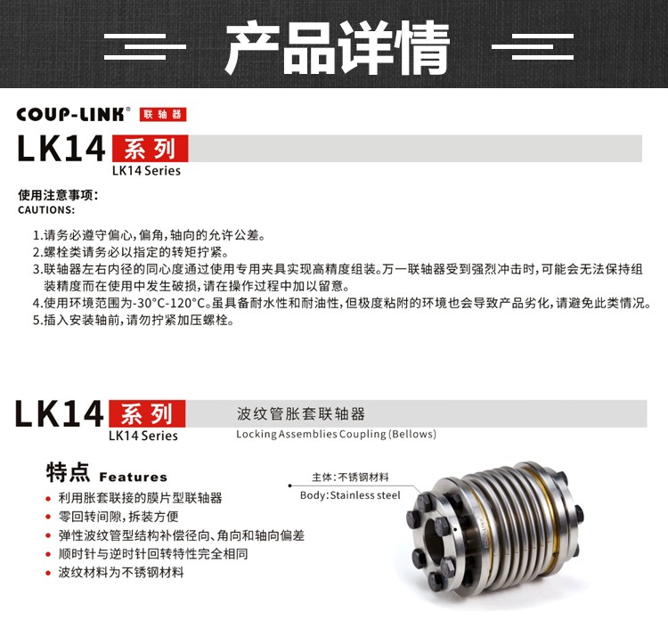 廣州菱科FA自動化配件 LK14 系列 波紋管脹套聯軸器