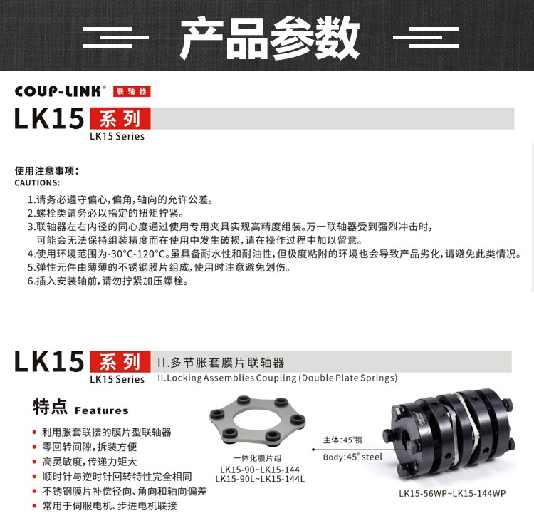 廣州菱科FA自動化配件 LK15 系列 脹套膜片聯軸器 多節脹套膜片聯軸器
