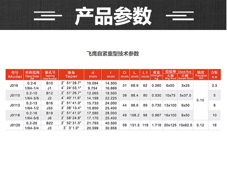 飛鷹機械 自緊鉆夾頭系列-飛鷹自緊重型
